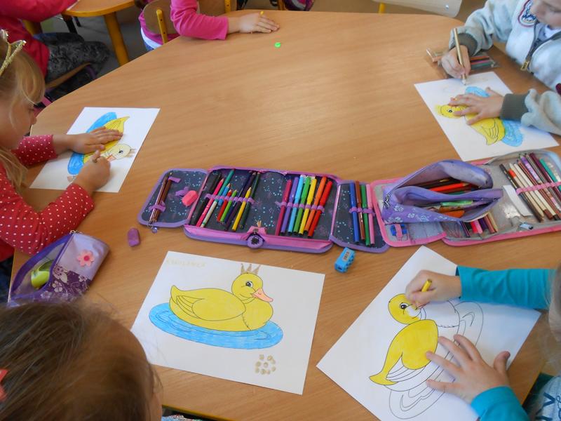 Tym razem dzieci miały możliwość zapoznania się z legendami o „Królu Popielu” i „Złotej kaczce”. Przedszkolaki z zaciekawieniem wysłuchały historyjek przedstawionych za pomocą ilustracji w teatrzyku Kamishibai oraz wykonywały prace plastyczne związane z omawianą legendą.