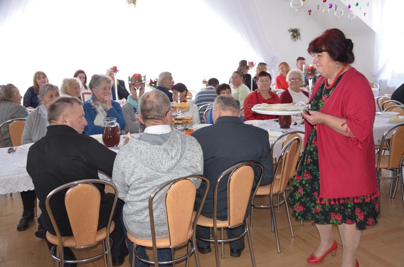 Spotkanie rozpoczęła Przewodnicząca Koła Gospodyń uroczystym powitaniem zaproszonych gości. W świąteczny klimat zebranych wprowadziły życzenia złożone przez Wójta oraz księdza Dziekana. Po poświęceniu opłatków i tradycyjnym przełamaniu się nimi, uczestnicy spotkania zostali zaproszeni do świątecznego obiadu, który składał się z tradycyjnych potraw wigilijnych.