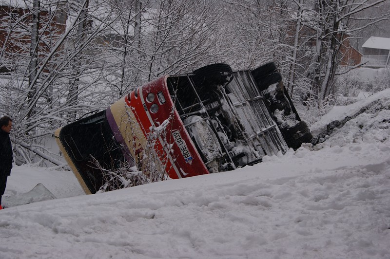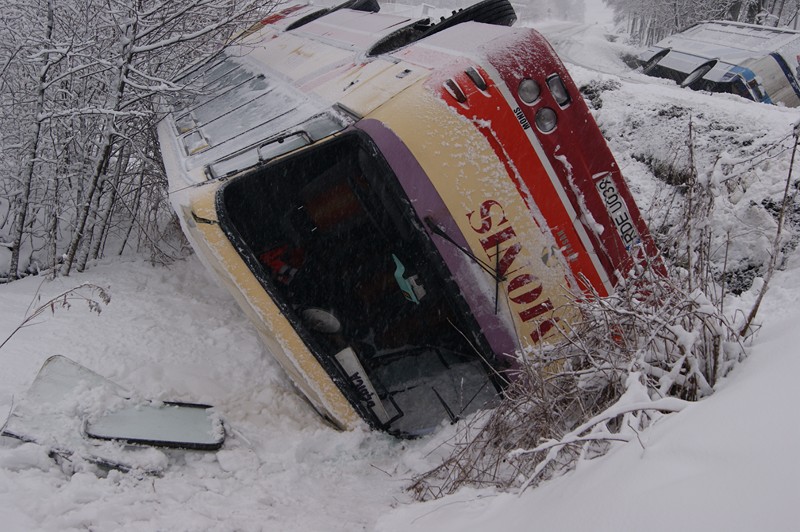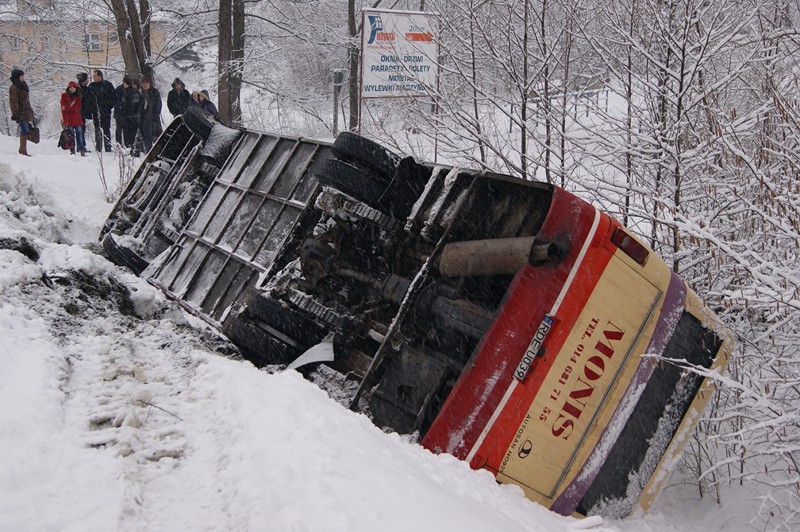 Ok. godz. 6:30 na drodze powiatowej Bielowy - Jodłowa w miejscowości Dęborzyn doszło do ciężkiego w skutkach wypadku. Podczas mijania się na łuku drogi, dwa autobusy uderzyły się bokiem i wpadły do rowu.
