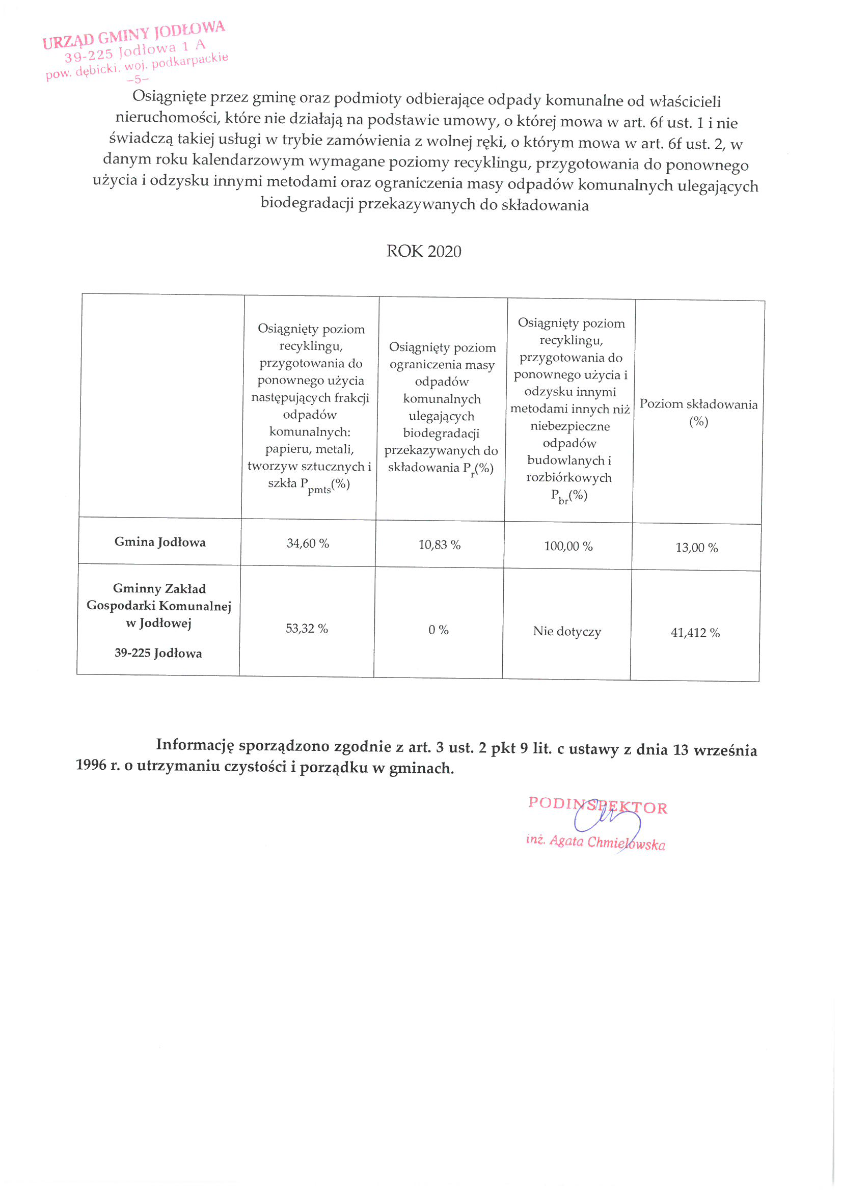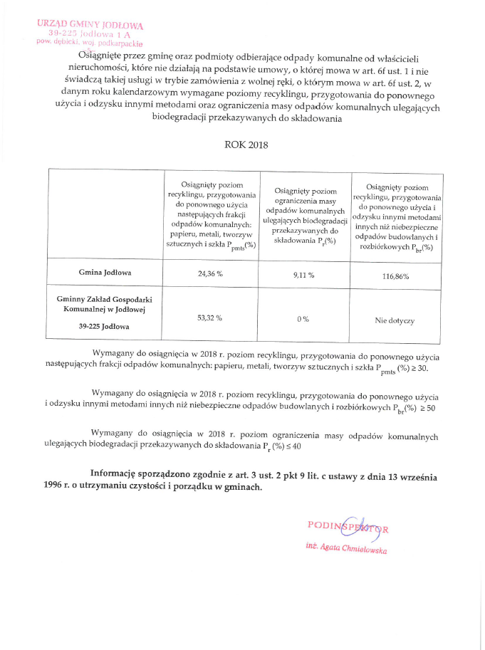 Informację sporządzono zgodnie z art. 3 ust. 2 pkt 9 lit. c ustawy z dnia 13 września 1996 r. o utrzymaniu czystości i porządku w gminach