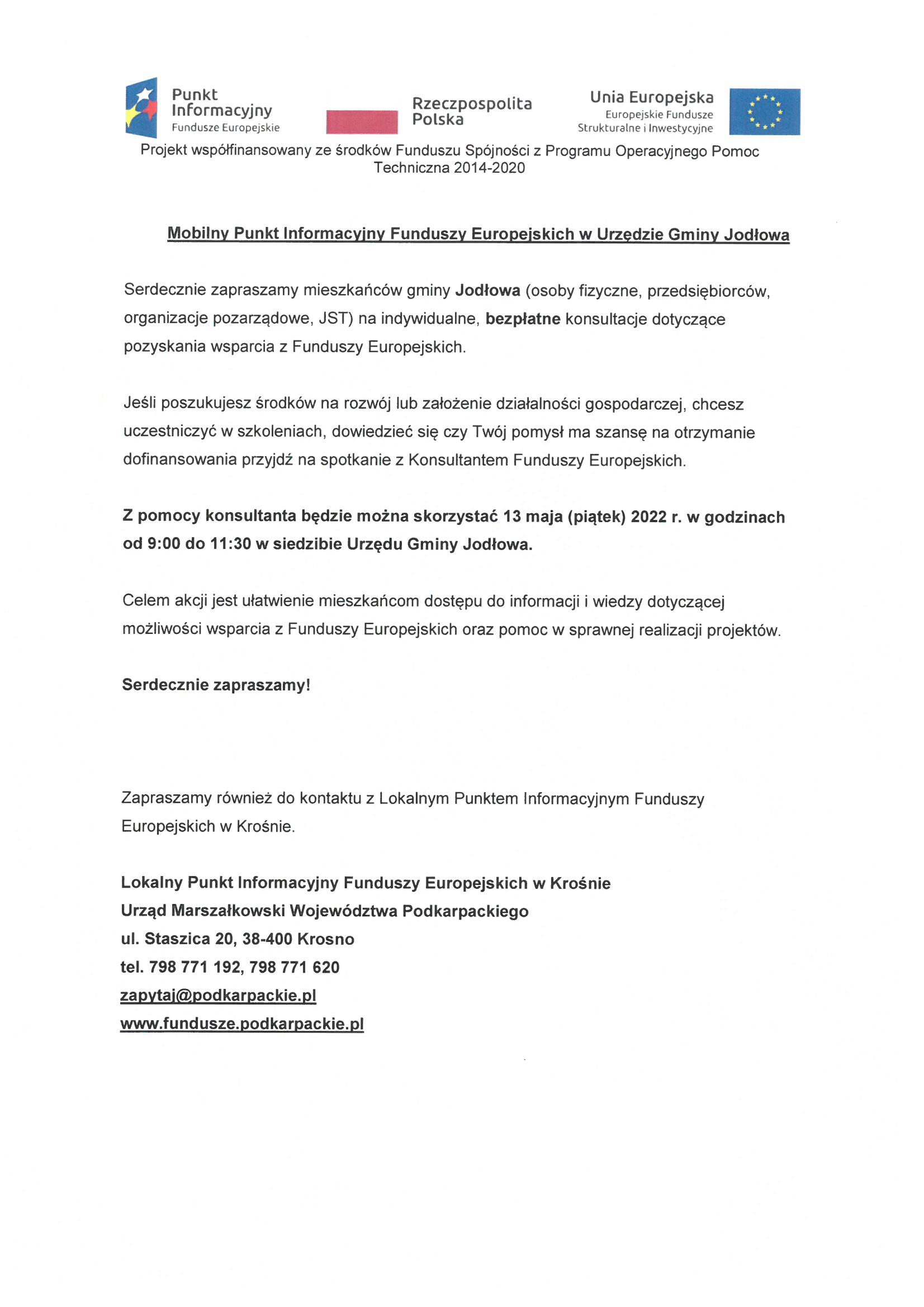 Mobilny Punkt Informacyjny Funduszy Europejskich w Urzędzie Gminy Jodłowa