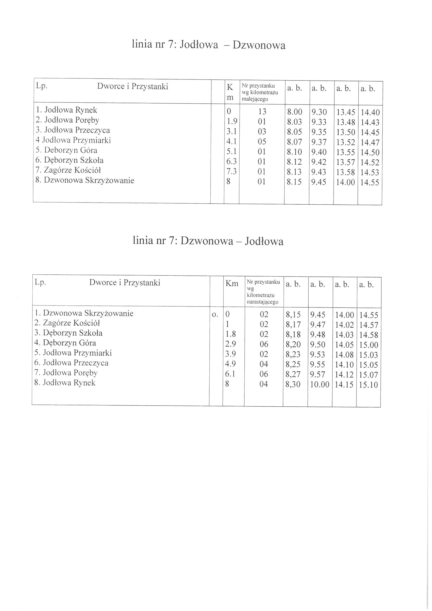 Rozkład jazdy BUSA na terenie gminy Jodłowa