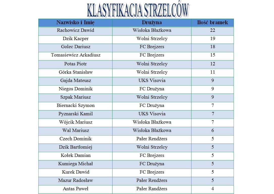 Królem strzelców w całym turnieju został Dawid Rachowicz(Wisłoka Błażkowa) , strzelec 22 bramek.