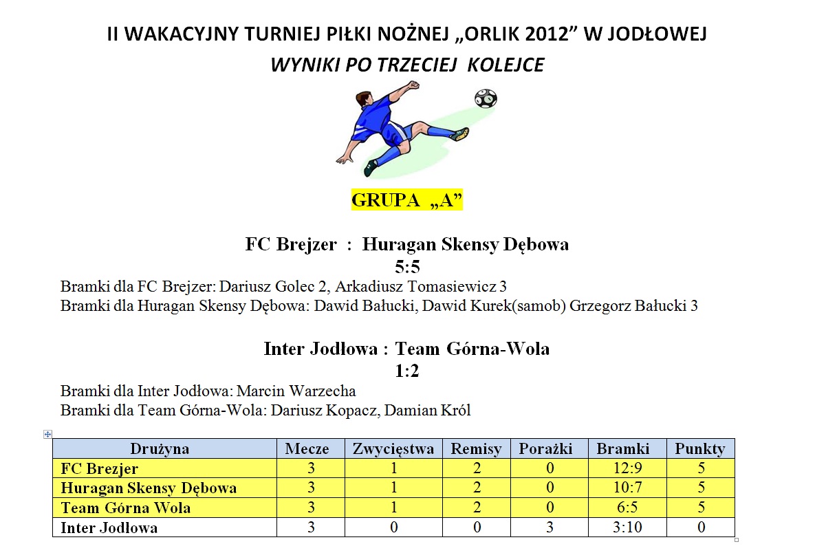 Relację z meczu o III miejsce można zobaczyć na stronie internetowej iTV południe pod adresem: http://www.itvpoludnie.pl/wiadomosci/II-Wakacyjny-Turniej-Pilki-Noznej-quotOrlik-2012quot-Mecz-o-III-miejsce-,961/