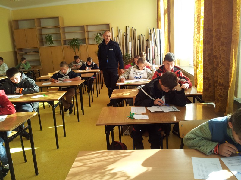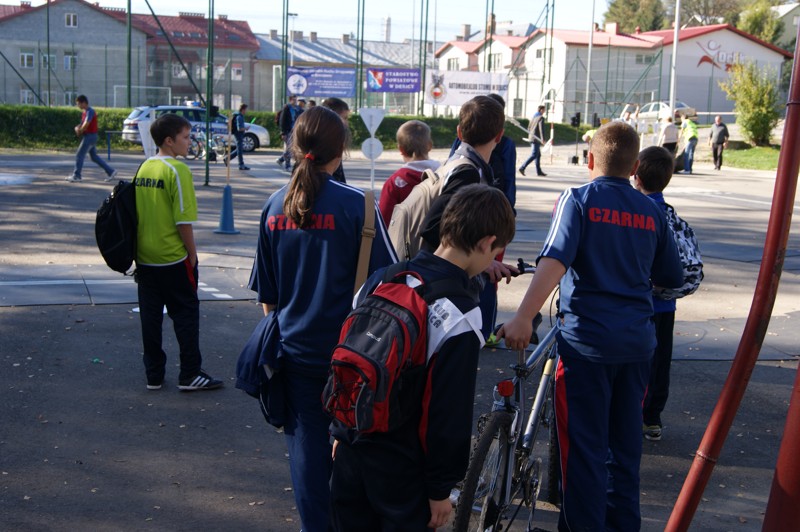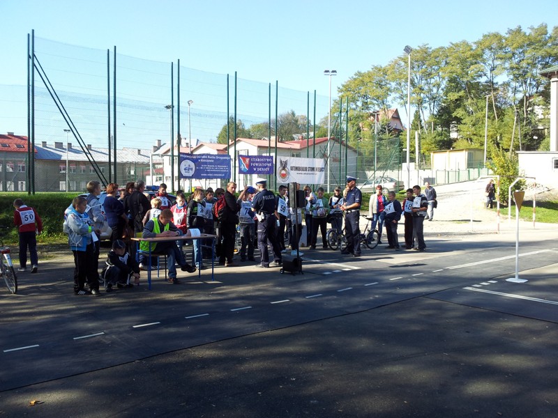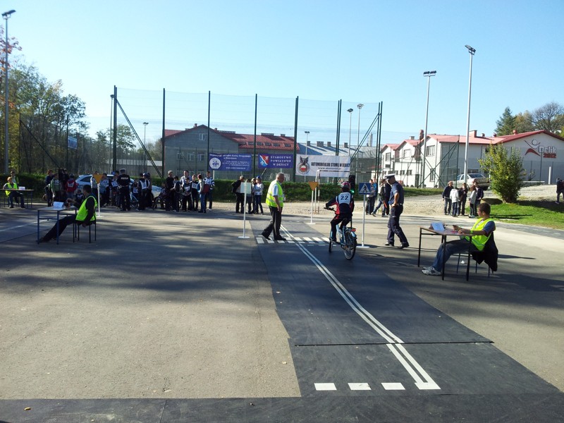 i drugiej części - przejazd rowerami z elementami toru przeszkód w miasteczku ruchu drogowego z oceną prawidłowego zachowania się w trakcie przejazdu.