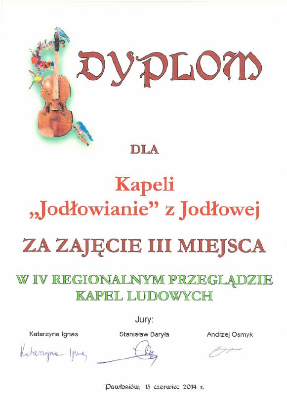 15 czerwca 2014r. w Pawłosiowie odbył się IV Regionalny Przegląd Kapel Ludowych, w którym kapela Jodłowianie zajęła III miejsce.