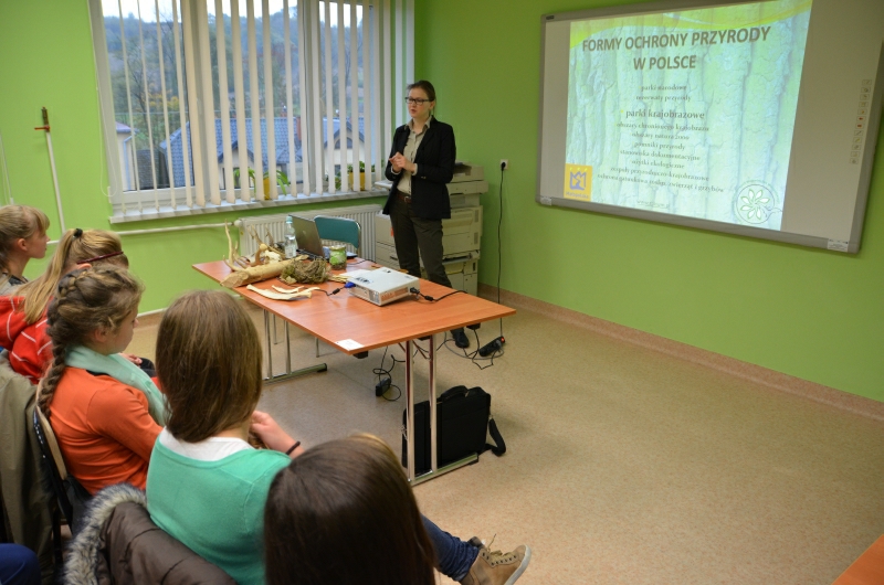 Zajęcia w których udział wzięli uczniowie tutejszego gimnazjum poprowadziła Pani Patrycja Łabuz – Walczak – starszy specjalista ds. edukacji w Zespole Parków Krajobrazowych Województwa Małopolskiego. Głównym tematem zajęć były Walory Parku Krajobrazowego Pasma Brzanki w granicach, którego leży również gmina Jodłowa. Uczestnicy zajęć zapoznali się z położeniem parku, z istniejącymi na terenie parku: rezerwatami przyrody, obszarami Natura 2000, porastającymi park zespołami roślinnymi oraz fauną i florą. Podczas zajęć prowadząca wyzwalała właściwe postawy wobec przyrody oraz uwrażliwiała na główne przyczyny degradacji środowiska.