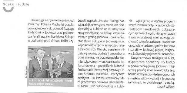 W załączeniu artykuł, jaki ukazał się w Nr 7/226 Wiadomości Uniwersyteckich zatytułowany "Światowa premiera filmu z udziałem pracowników Instytutu Filologii Słowiańskiej UMCS"