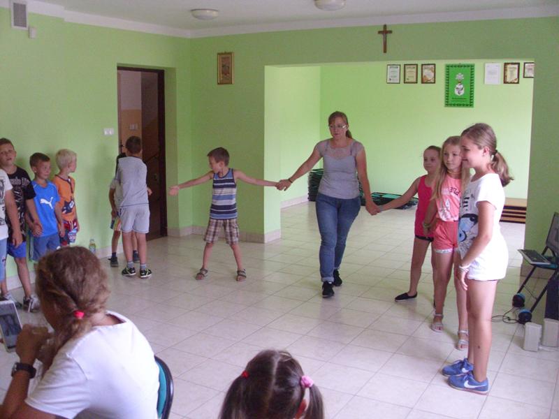 Zajęcia wakacyjne zakończyły się wspólnym spotkaniem przy słodkim poczęstunku i kiełbasce z grilla. Były także tańce i zabawy w rytm muzyki.