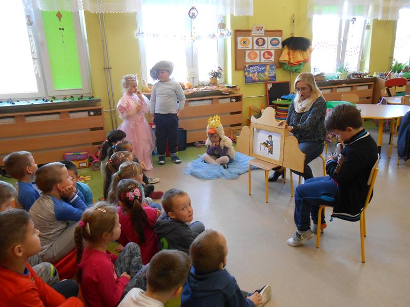 Tym razem dzieci miały możliwość zapoznania się z legendami o „Królu Popielu” i „Złotej kaczce”. Przedszkolaki z zaciekawieniem wysłuchały historyjek przedstawionych za pomocą ilustracji w teatrzyku Kamishibai oraz wykonywały prace plastyczne związane z omawianą legendą.