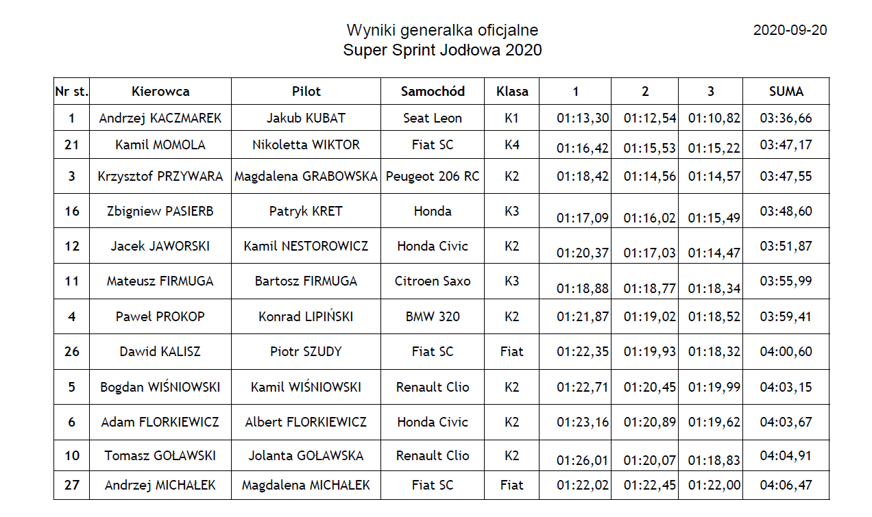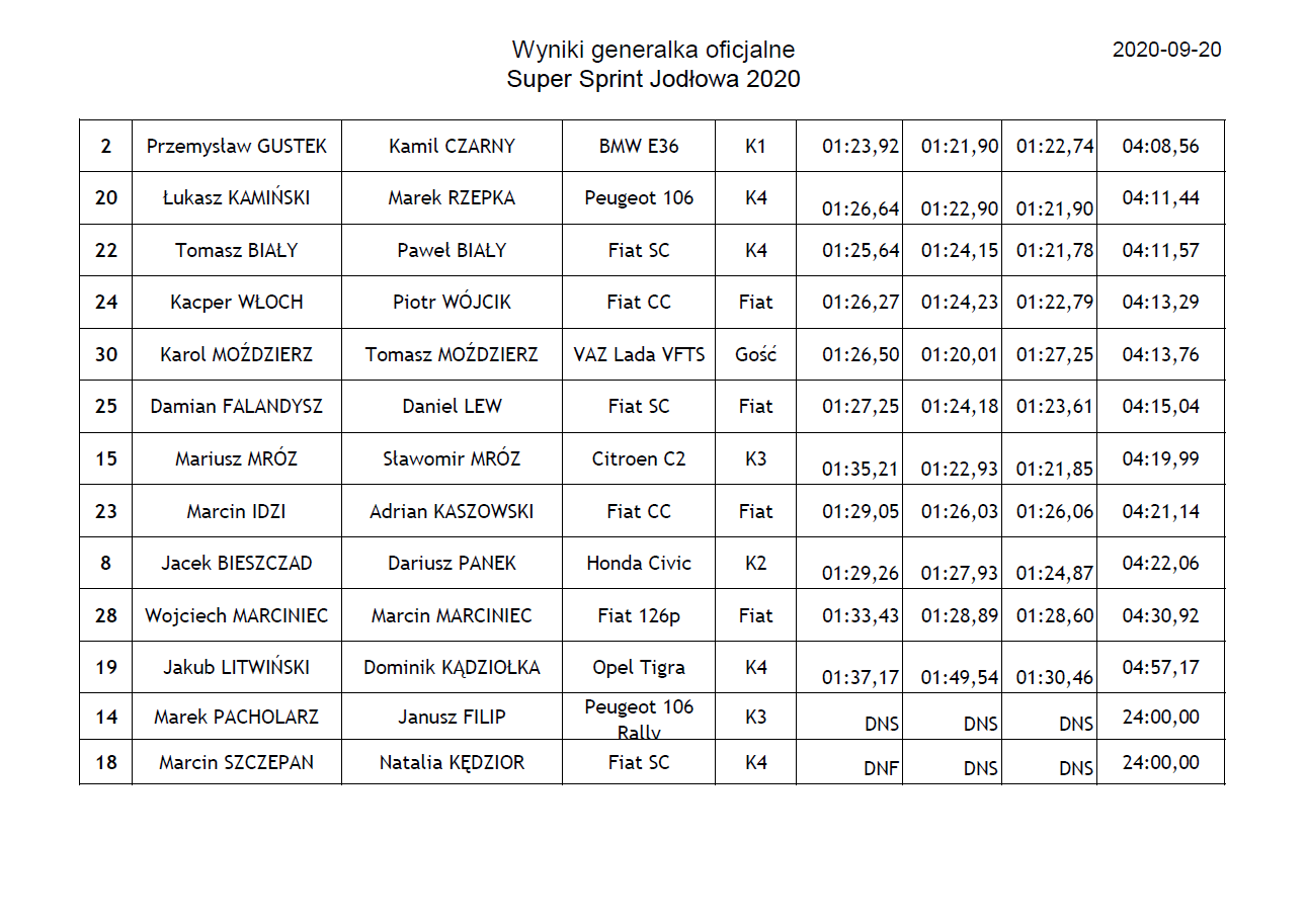 W dniu 20 września 2020r. odbył się Super Sprint o Puchar Wójta Gminy Jodłowa. Była to 3 runda Mistrzostw Okręgu Rzeszowskiego PZM w Super Sprincie 2020.