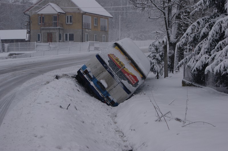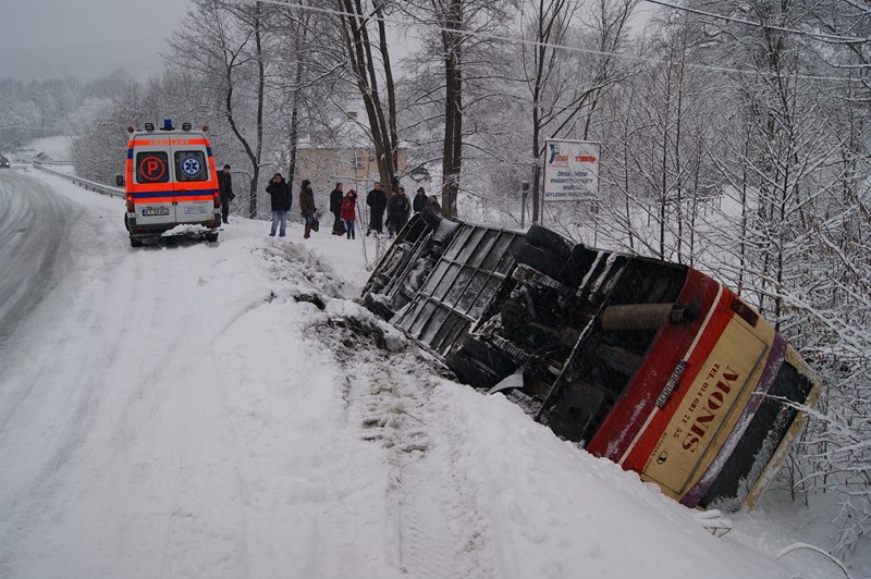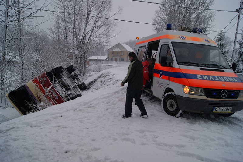 Ok. godz. 6:30 na drodze powiatowej Bielowy - Jodłowa w miejscowości Dęborzyn doszło do ciężkiego w skutkach wypadku. Podczas mijania się na łuku drogi, dwa autobusy uderzyły się bokiem i wpadły do rowu.