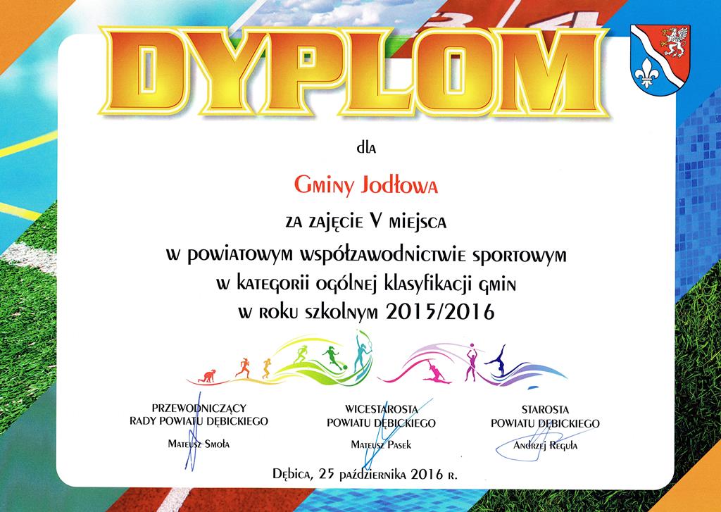 Do tego sukcesu przyczynili się nasi uczniowie. W ogólnej klasyfikacji Szkoła Podstawowa Nr 1 w Jodłowej zajęła 10 miejsce wśród wszystkich szkół podstawowych Powiatu Dębickiego, a Gimnazjum z Jodłowej uplasowało się na 5 pozycji pośród gimnazjów powiatowych. Spośród 7 gmin wchodzących w skład powiatu Gmina Jodłowa zajęła V miejsce (wyprzedzając Brzostek i Czarną). Na uroczystości nagrodzeni zostali również gminni organizatorzy sportu i nauczyciele. Dyplom otrzymał dyrektor GCKiCz w Jodłowej -Waldemar Sztogrin i Robert Warzecha – nauczyciel wychowania fizycznego ZS Nr 1 w Jodłowej i animator sportu na kompleksie boisk Orlik.