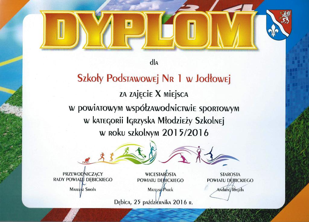 Dnia 25 października 2016 r. w Domu Sportu w Dębicy odbyło się podsumowanie współzawodnictwa Sportowego Dzieci i Młodzieży Powiatu Dębickiego za rok szkolny 2015/2016. Powiat Dębicki zajął drugie miejsce na Podkarpaciu za realizację programu Wojewódzkich Igrzysk Młodzieży Szkolnej i Gimnazjady oraz uzyskał trzecią lokatę w Licealiadzie.