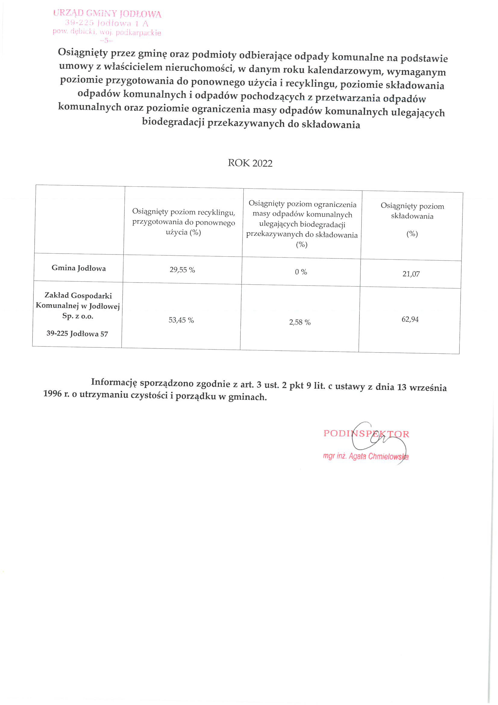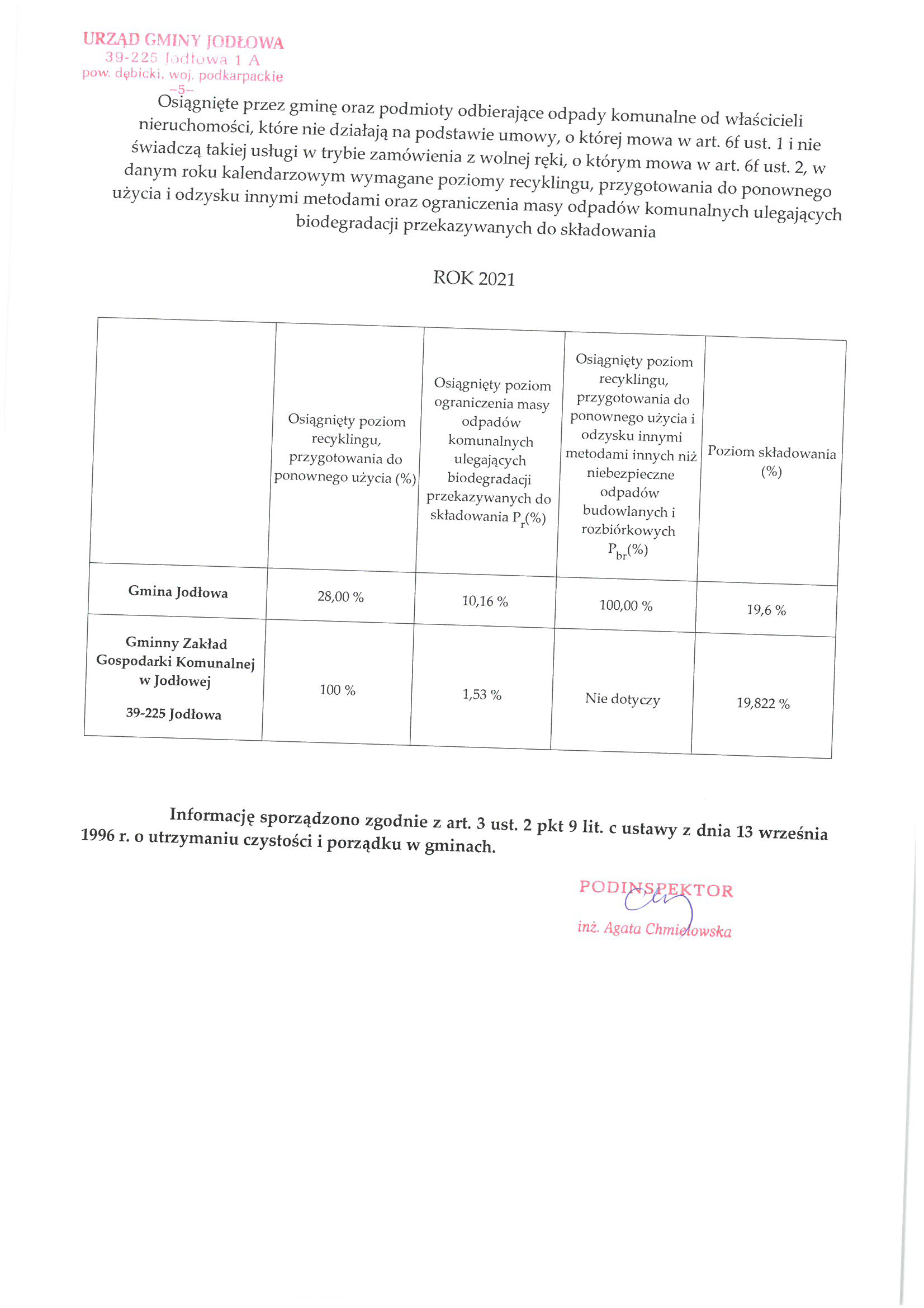 Informację sporządzono zgodnie z art. 3 ust. 2 pkt 9 lit. c ustawy z dnia 13 września 1996 r. o utrzymaniu czystości i porządku w gminach