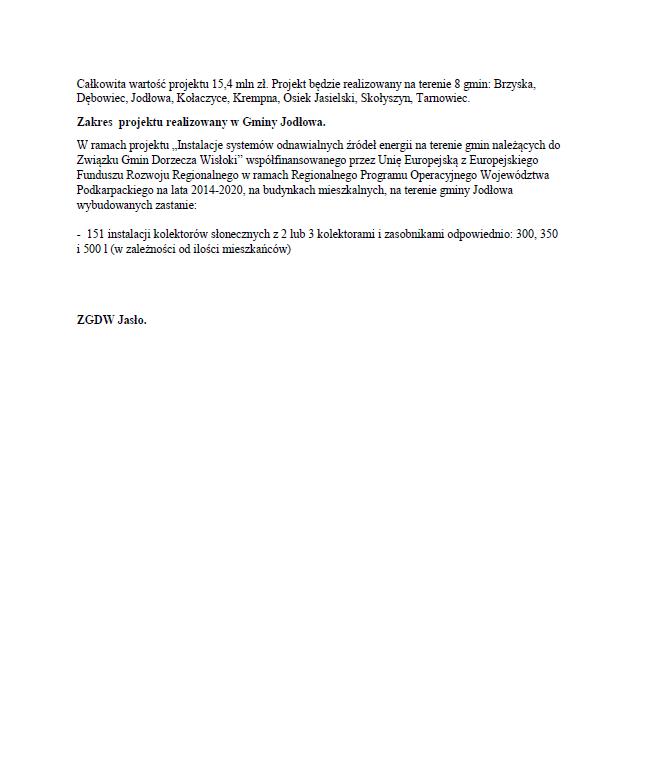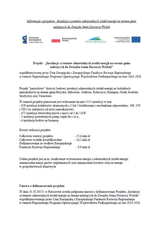 Poprzednia strona: Informacja o projekcie „Instalacje systemów odnawialnych źródeł energii na terenie gmin należących do Związku Gmin Dorzecza Wisłoki”