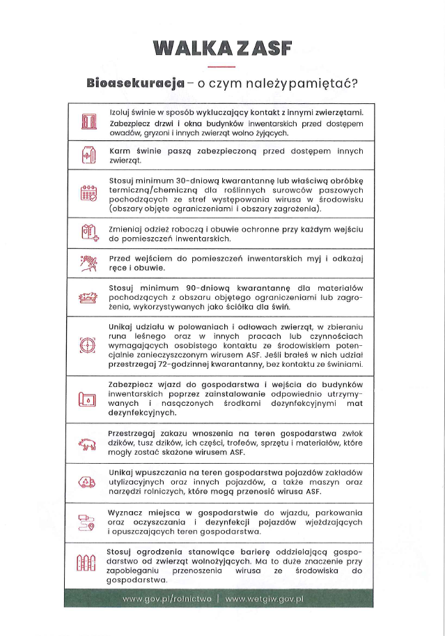 Walka z ASF. Bioasekuracja - o czym należy pamiętać?
