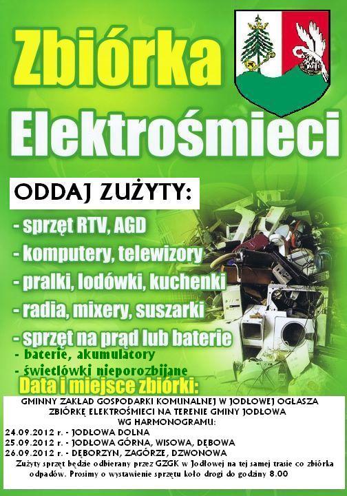 Gminny Zakład Gospodarki Komunalnej w Jodłowej ogłasza zbiórkę elektrośmieci na terenie gminy Jodłowa.