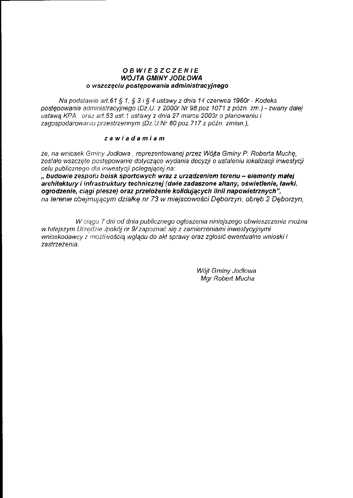 Obwieszczenie Wójta Gminy Jodłowa o wszczęciu postępowania administracyjnego