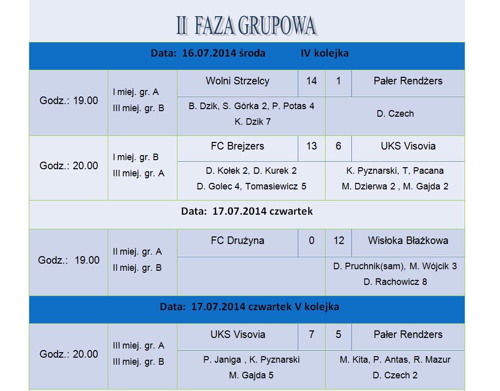 Największe emocje sportowe przyniosła ostatnia faza finałowa, którą to rozpoczęły drużyny w meczu o III miejsce w turnieju : Wisłoka Błażkowa – FC Drużyna. Drużyna gościnie zaproszona, nie dała żadnych szans i wygrała pewnie 7:2, wygrywając mały finał i zajmując miejsce III w całym turnieju.