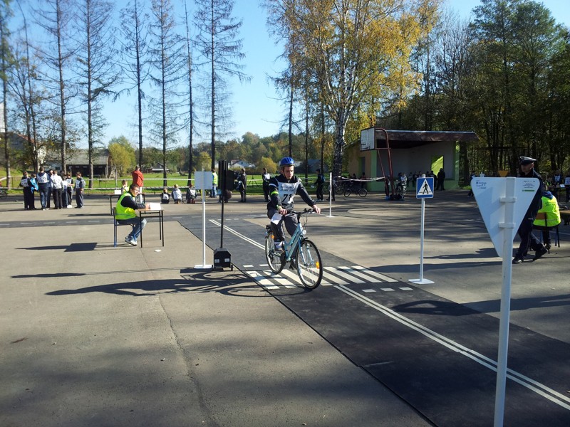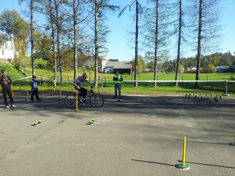 i drugiej części - przejazd rowerami z elementami toru przeszkód w miasteczku ruchu drogowego z oceną prawidłowego zachowania się w trakcie przejazdu.