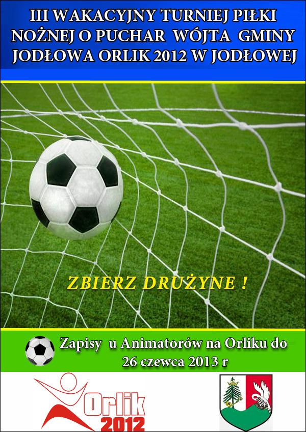 Animatorzy Orlika zapraszają wszystkich fanów piłki nożnej do wzięcia uidziału w III Wakacyjnym Turnieju Piłki Nożnej o Puchar Wójta Gminy Jodłowa "Orlik 2012" w Jodłowej.